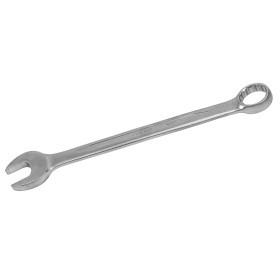 Prstencově-vidlicový klíč z chrom-vanadové oceli. Matně pochromovaný dřík, lesklá hlava.